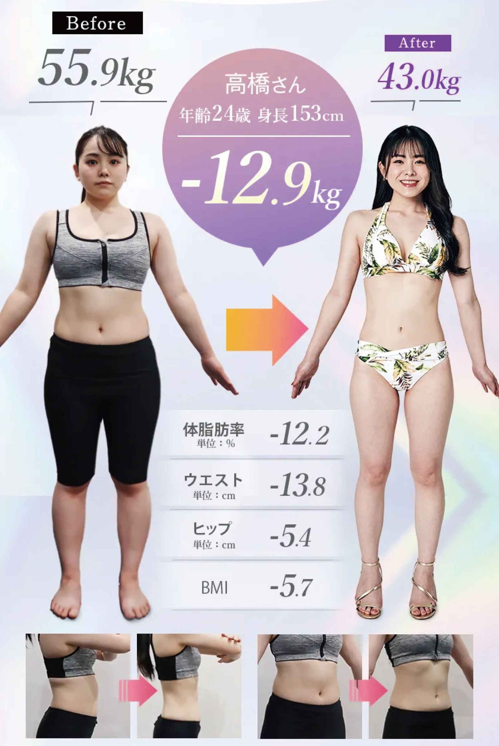 ※3ヶ月医療痩身ボディメイクを契約されたモニター対象の会員の代表的な事例を提示しています※効果には個人差があります