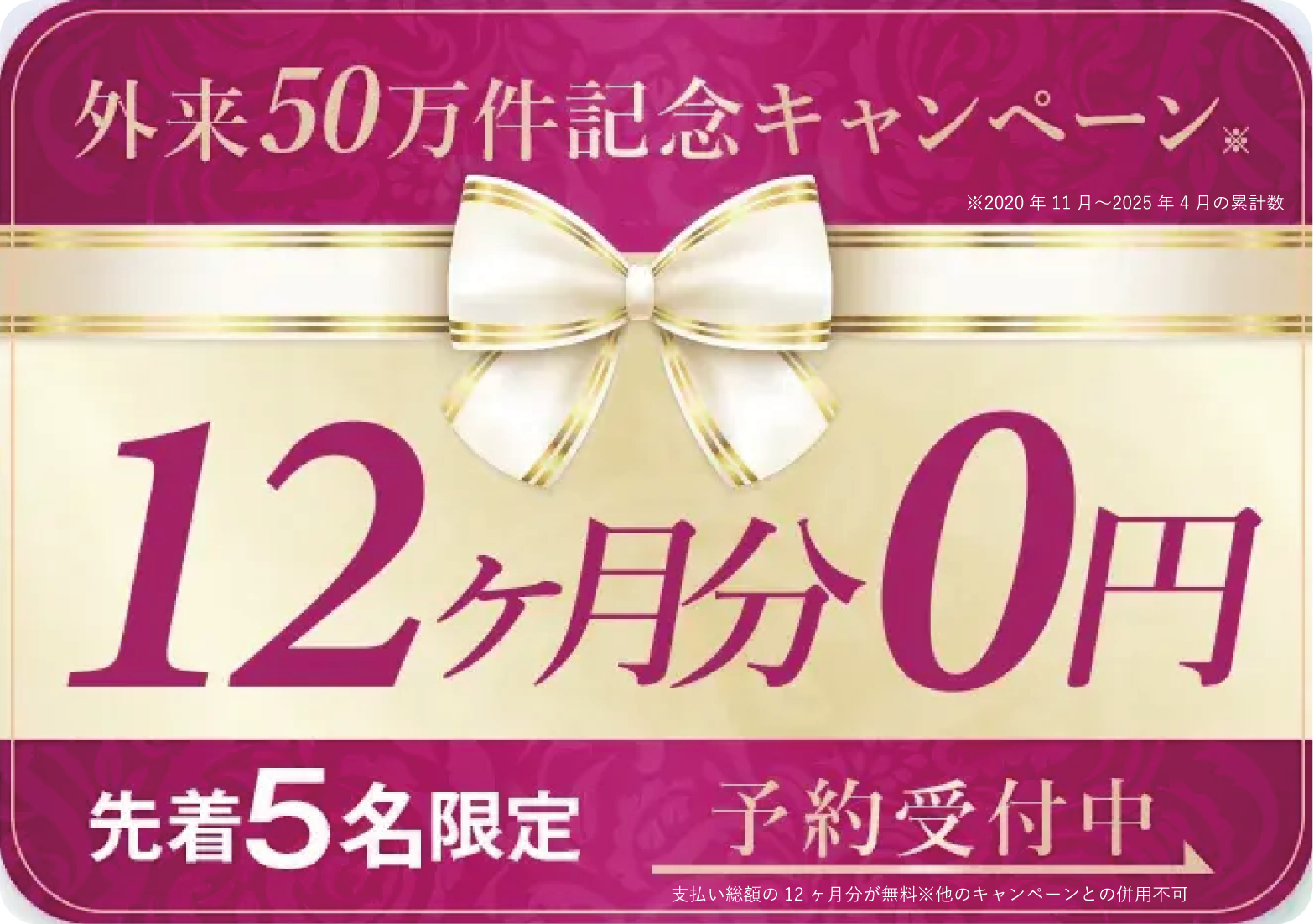 ※契約時に同意書契約を結んだ場合のみで適用※支払総額の12ヶ月分が無料※他キャンペーンとの併用不可※コースによって適用できる要件が異なります