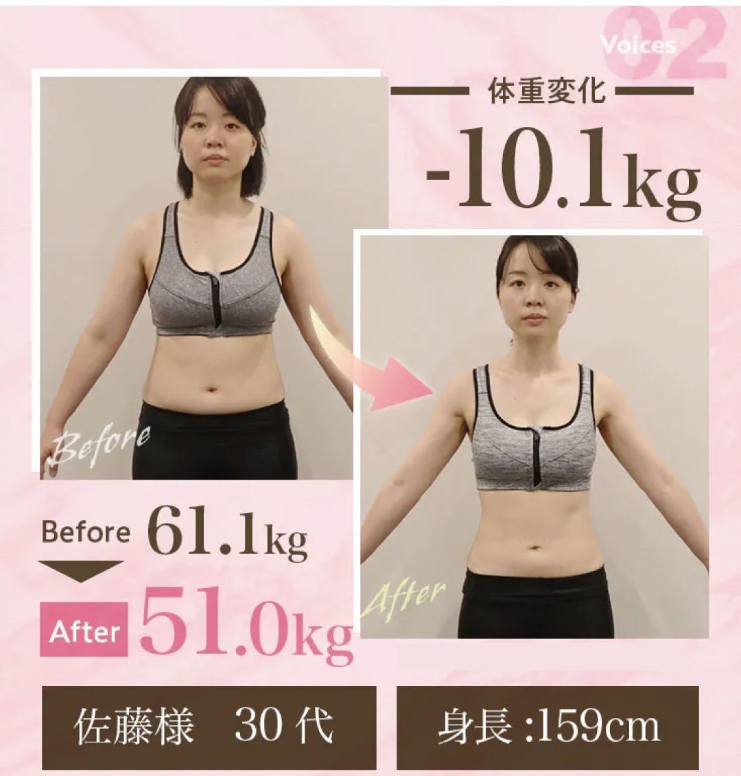 ※最終体重測定2023/02/01~2023/07/31で薬なし/食事指導なしを除く、3ヶ月コース(ビューティー/リピート除く)の契約終了者が対象※初回体重50kg以上or初回BMI25以上の方限定